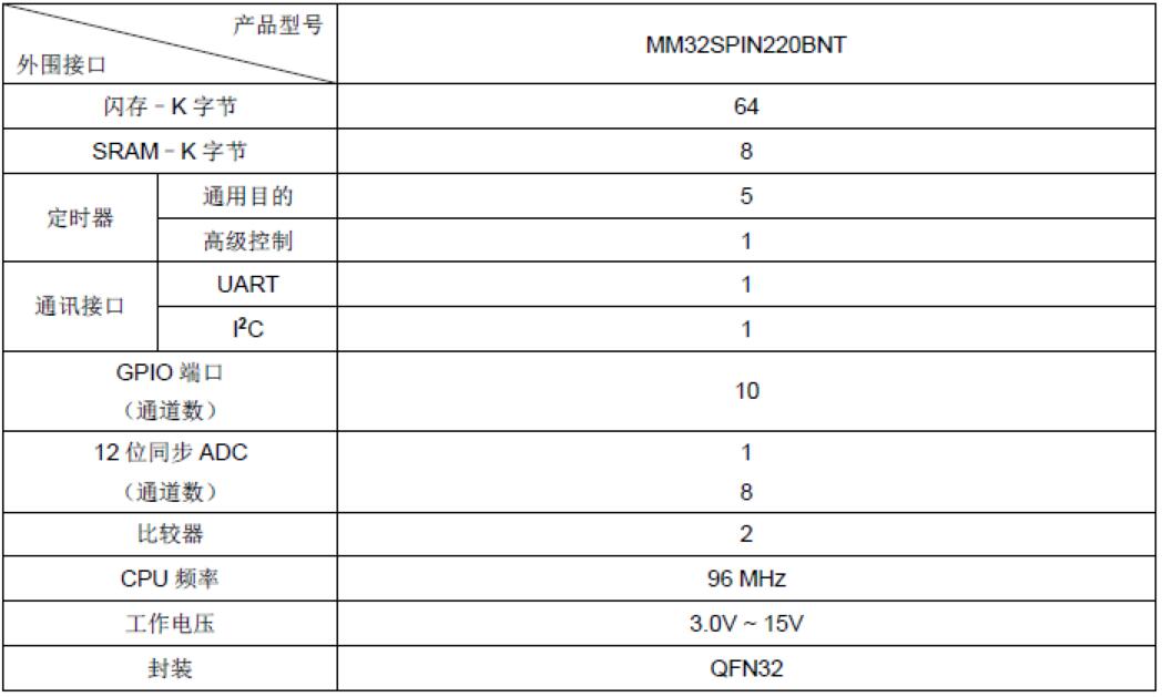 MM32SPIN220B產(chǎn)品功能和外設(shè)配置