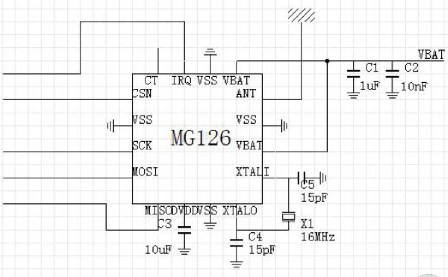 射頻芯片是低功耗、低成本的BLE收發(fā)器,內(nèi)部集成了發(fā)射機(jī)、接收機(jī)、GFSK調(diào)制解調(diào)器和BLE基帶處理。MG126采用QFN3x3封裝,搭配Cortex-M0 MCU和少數(shù)外圍被動(dòng)器件,可以實(shí)現(xiàn)BLE遙控、藍(lán)牙鍵盤(pán)等數(shù)據(jù)傳輸應(yīng)用。電源電壓1.9~3.6,可以采用一個(gè)紐扣電池(3.0v)供電,具有3uA待機(jī)電流,20mA@0dBm持續(xù)發(fā)射,18mA持續(xù)接收。
