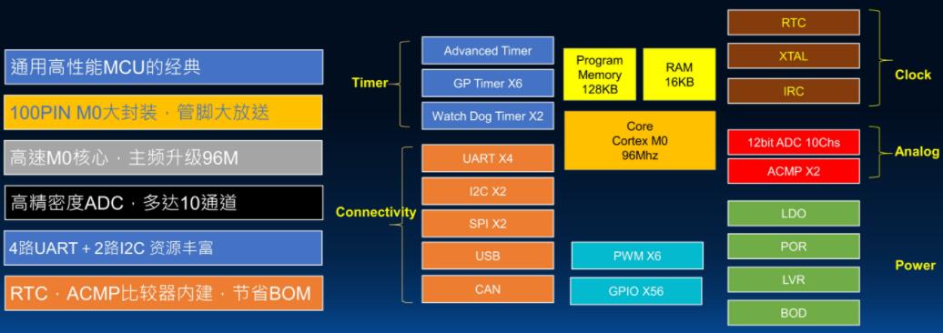 –支持的外設包括:Timer、ADC、DAC、UART、I2C、SPI、USB和CAN