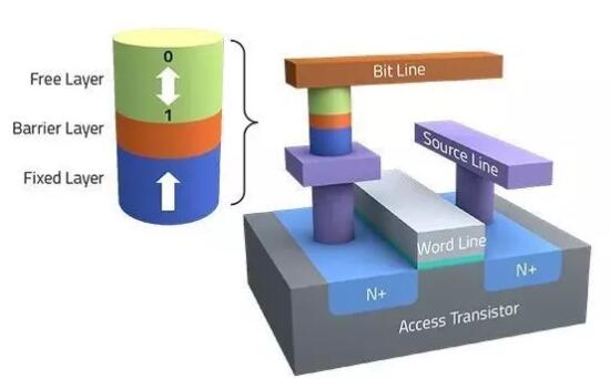 STT-MRAM是具有磁隧道結(jié)(MTJ)存儲(chǔ)器單元的單晶體管架構(gòu)。它利用電子自旋的磁性在芯片中提供非揮發(fā)性特性。寫(xiě)入和讀取功能在MTJ單元中共享相同的并行路徑。