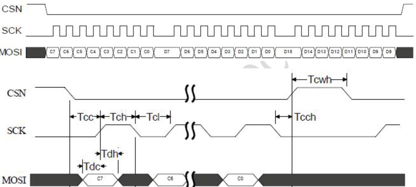 其中MOSI 信號用于輸入和輸出。MCU 可以用3 個GPIO 模擬SPI,我們提供3 線SPI 的參考C 源碼。