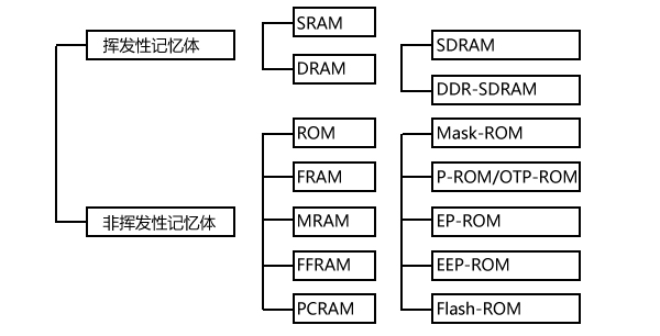 揮發(fā)性存儲(chǔ)器(Volatile Memory,VM):電源開(kāi)啟時(shí)資料存在,電源關(guān)閉則資料立刻流失(資料揮發(fā)掉),例如:SRAM、DRAM、SDRAM、DDR-SDRAM 等。